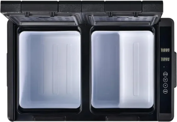 Hai ngăn độc lập: Cho phép bạn tùy chỉnh nhiệt độ riêng biệt cho từng ngăn (ví dụ: một bên để đá/kem, một bên để nước giải khát/trái cây).- Làm lạnh sâu đến -20 °C, dùng máy nén, có màn hình điều khiển LCD